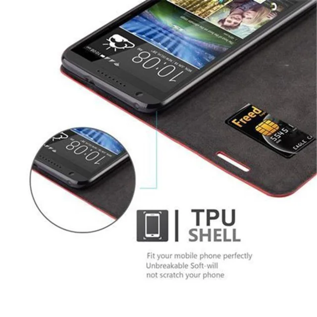 Cadorabo Ohišje, združljivo z HTC Desire 820 v rdeče jabolko - Zaščitni ovitek z magnetnim zapiranjem, stoječo funkcijo in režo za kartice
