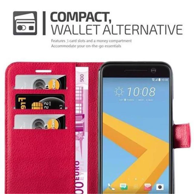 Cadorabo Ohišje, združljivo z HTC ONE M10 v rdeče sladkorno jabolko - Zaščitni ovitek z magnetnim zapiranjem, stoječo funkcijo in režo za kartice