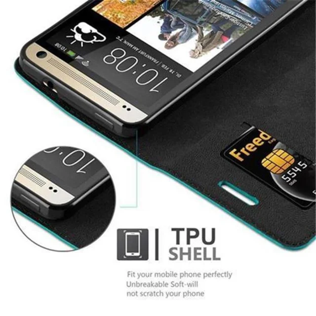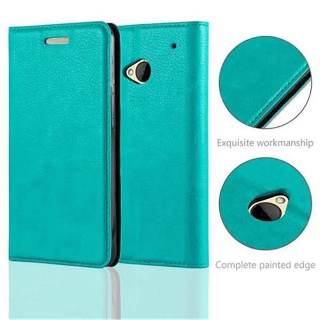 Cadorabo Ohišje, združljivo z HTC ONE M7 v bencinsko turkizna - Zaščitni ovitek z magnetnim zapiranjem, stoječo funkcijo in režo za kartice