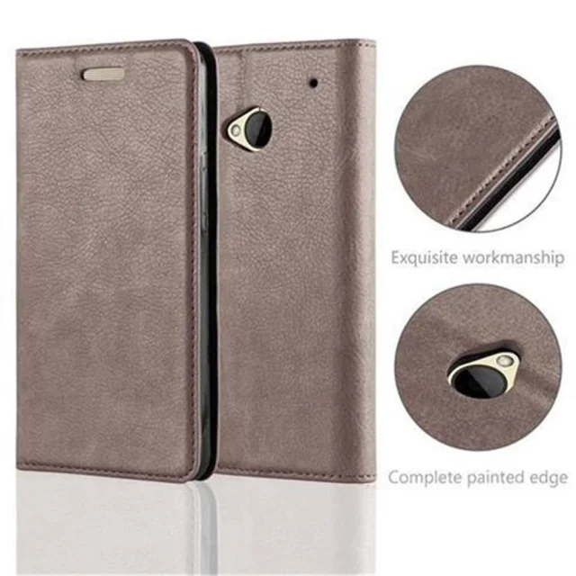 Cadorabo Ohišje, združljivo z HTC ONE M7 v kavovinsko rdeča - Zaščitni ovitek z magnetnim zapiranjem, stoječo funkcijo in režo za kartice