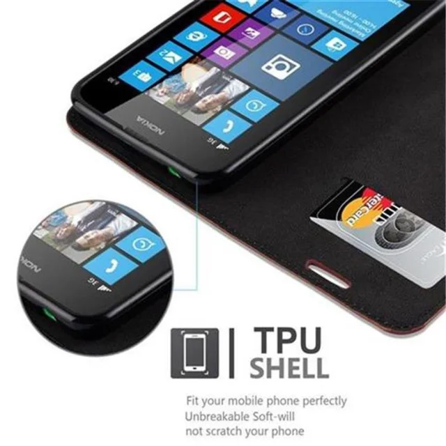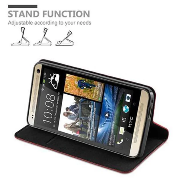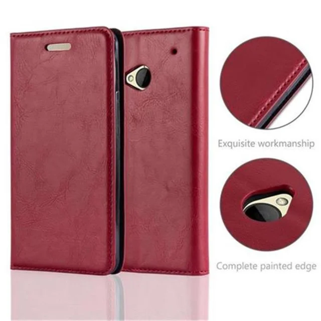 Cadorabo Ohišje, združljivo z HTC ONE M7 v rdeče jabolko - Zaščitni ovitek z magnetnim zapiranjem, stoječo funkcijo in režo za kartice