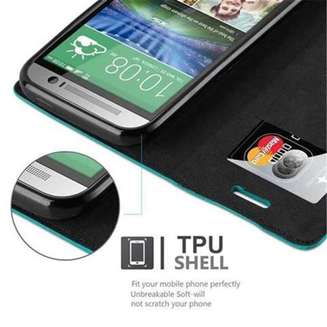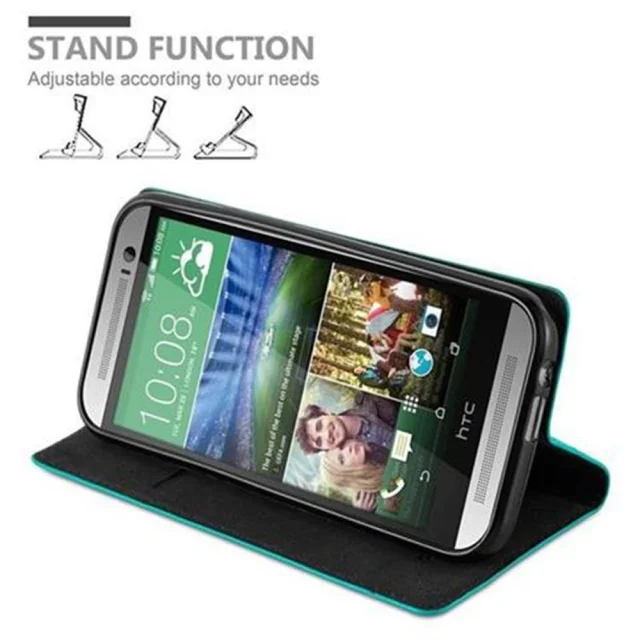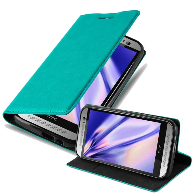 Cadorabo Ohišje, združljivo z HTC ONE M8 v bencinsko turkizna - Zaščitni ovitek z magnetnim zapiranjem, stoječo funkcijo in režo za kartice