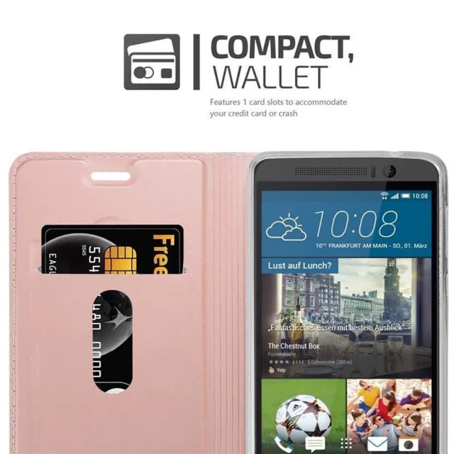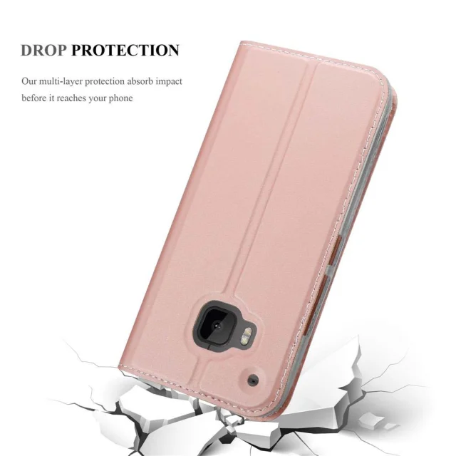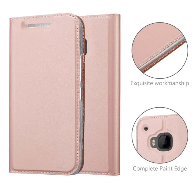 Cadorabo Ohišje, združljivo z HTC ONE M9 v klasična rožnata zlata - Zaščitni ovitek z magnetnim zapiranjem, stoječo funkcijo in režo za kartice