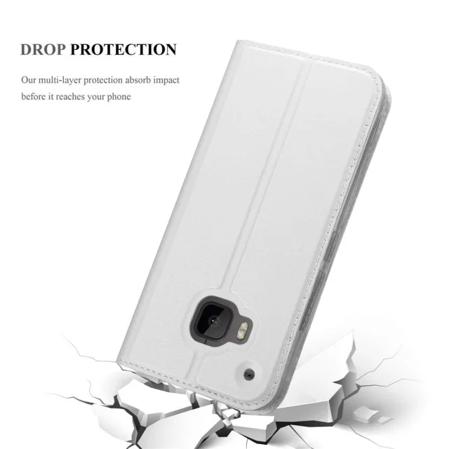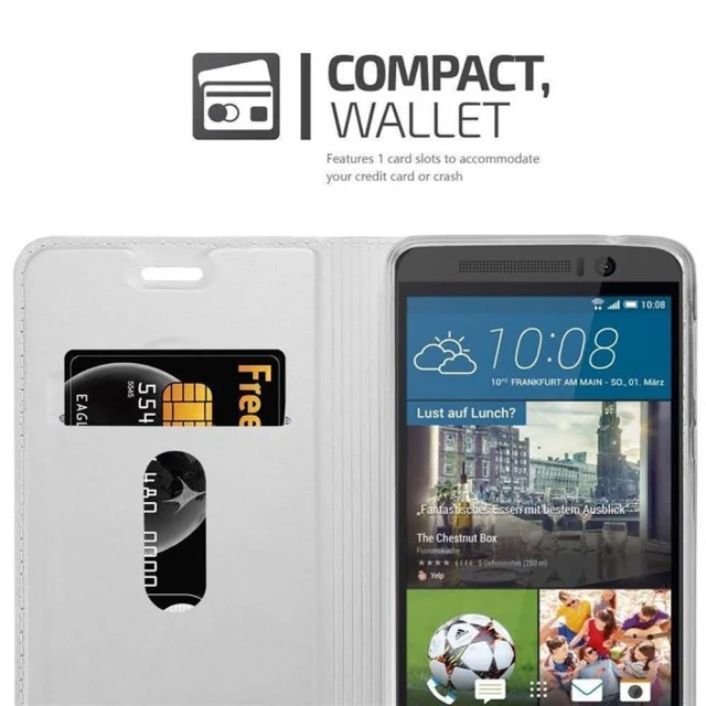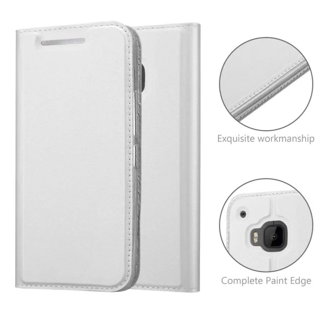 Cadorabo Ohišje, združljivo z HTC ONE M9 v klasično srebrno - Zaščitni ovitek z magnetnim zapiranjem, stoječo funkcijo in režo za kartice