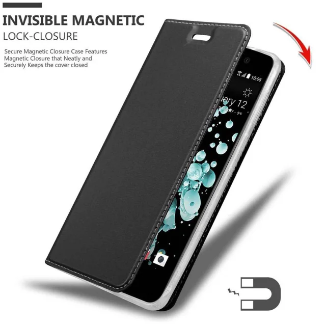 Cadorabo Ohišje, združljivo z HTC U PLAY v klasična črna - Zaščitni ovitek z magnetnim zapiranjem, stoječo funkcijo in režo za kartice