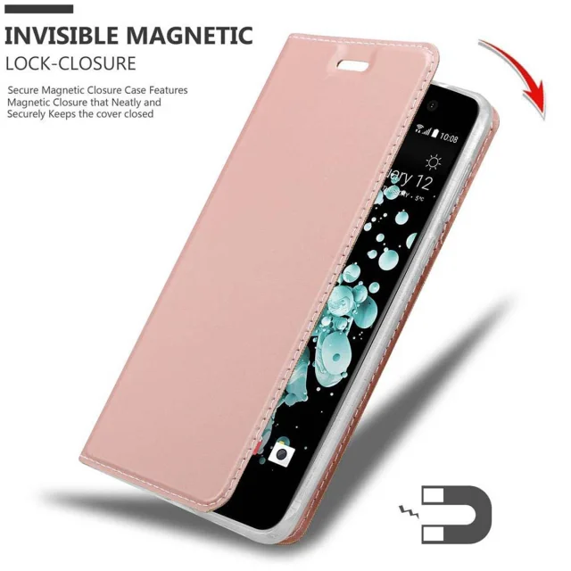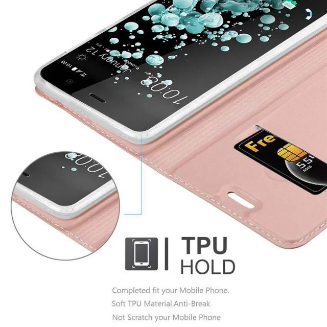 Cadorabo Ohišje, združljivo z HTC U PLAY v klasična rožnata zlata - Zaščitni ovitek z magnetnim zapiranjem, stoječo funkcijo in režo za kartice