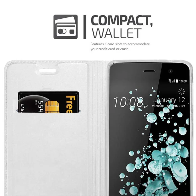 Cadorabo Ohišje, združljivo z HTC U PLAY v klasično srebrno - Zaščitni ovitek z magnetnim zapiranjem, stoječo funkcijo in režo za kartice