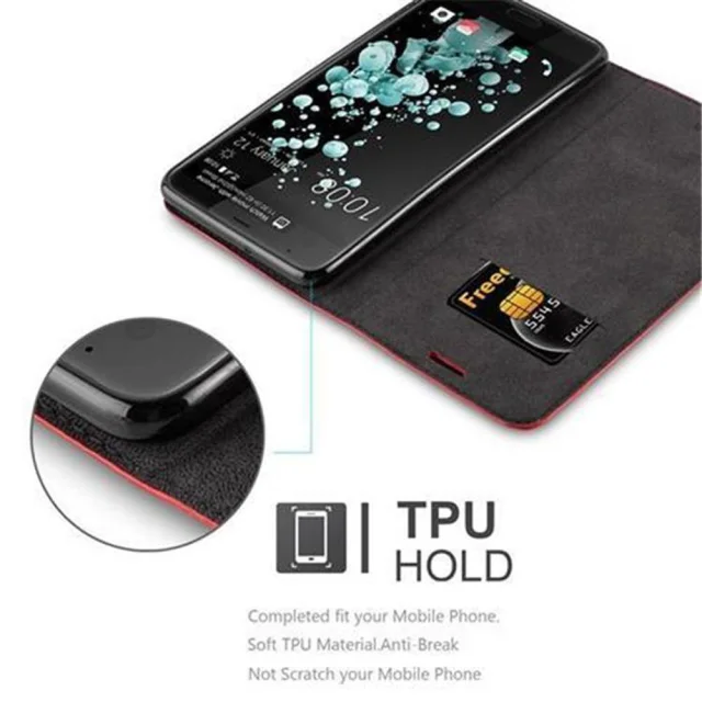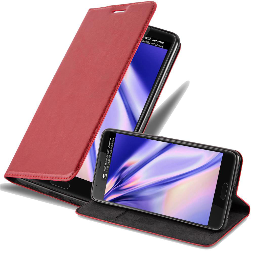 Cadorabo Ohišje, združljivo z HTC U ULTRA v rdeče jabolko - Zaščitni ovitek z magnetnim zapiranjem, stoječo funkcijo in režo za kartice