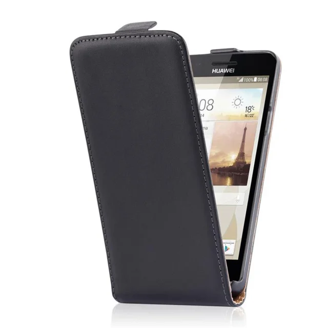 Cadorabo Ohišje, združljivo z Huawei ASCEND P6 MINI v kaviar črna - Zaščitni ovitek v obliki flipa iz gladkega umetnega usnja