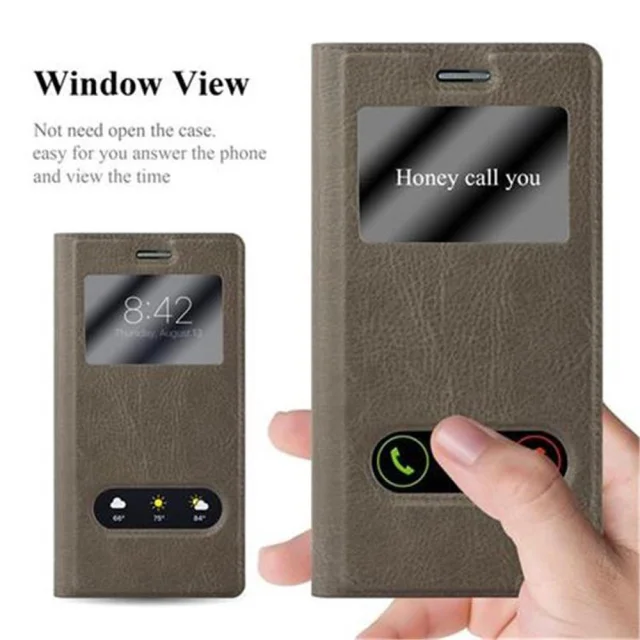 Cadorabo Ohišje, združljivo z Huawei ASCEND P7 v kamnito rjava - Zaščitni ovitek z magnetnim zapiranjem, stoječo funkcijo in 2 okencema za gledanje