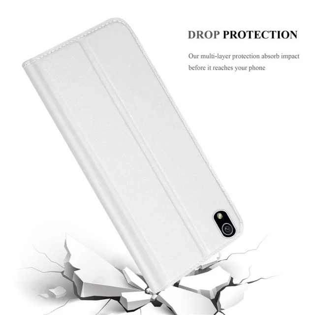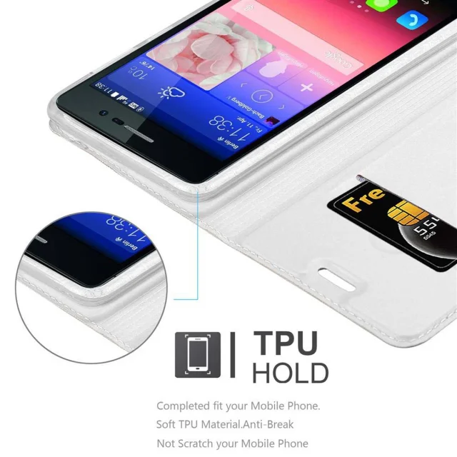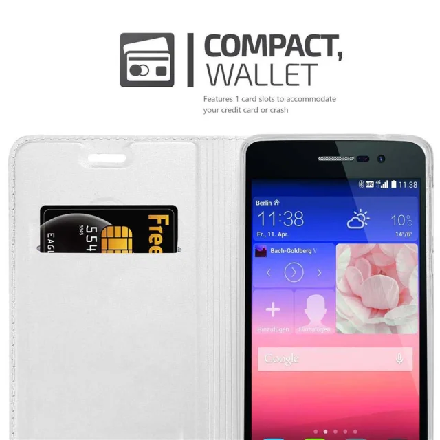 Cadorabo Ohišje, združljivo z Huawei ASCEND P7 v klasično srebrno - Zaščitni ovitek z magnetnim zapiranjem, stoječo funkcijo in režo za kartice