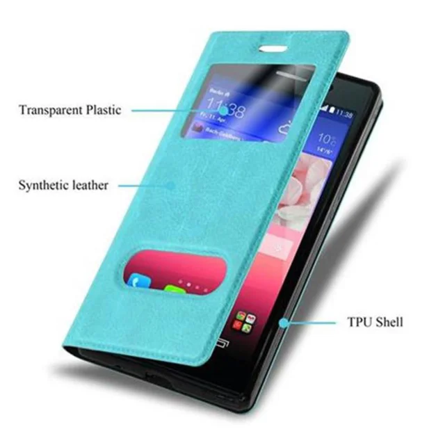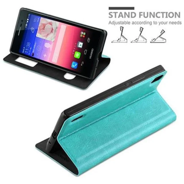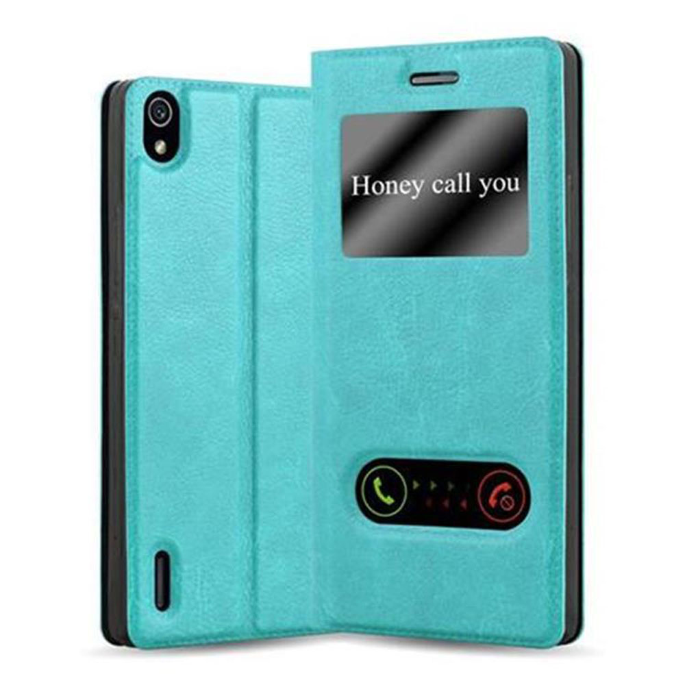 Cadorabo Ohišje, združljivo z Huawei ASCEND P7 v mint turquoise - Zaščitni ovitek z magnetnim zapiranjem, stoječo funkcijo in 2 okencema za gledanje