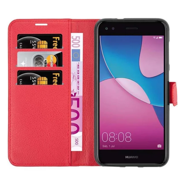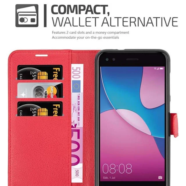 Cadorabo Ohišje, združljivo z Huawei Enjoy 7 v rdeče sladkorno jabolko - Zaščitni ovitek z magnetnim zapiranjem, stoječo funkcijo in režo za kartice