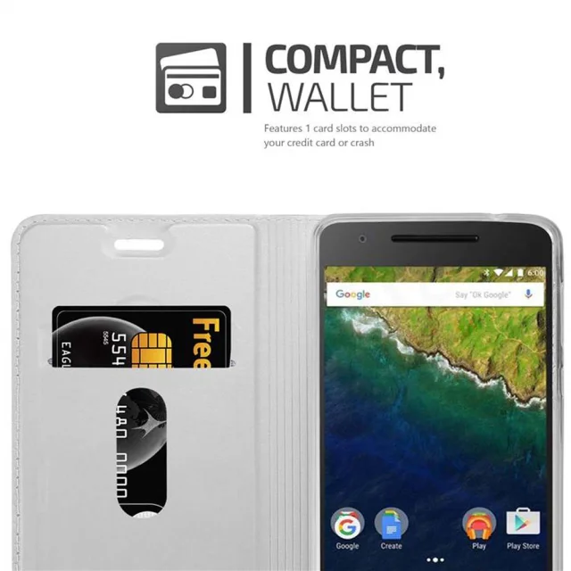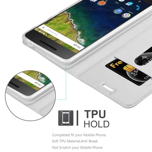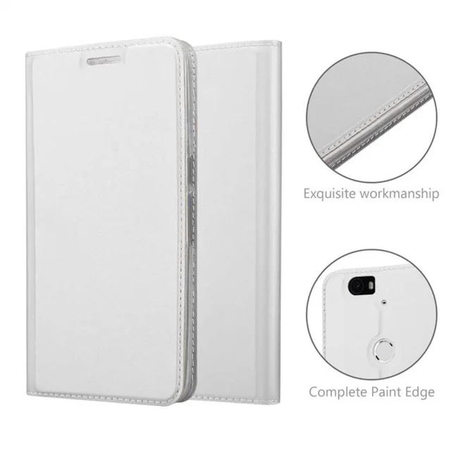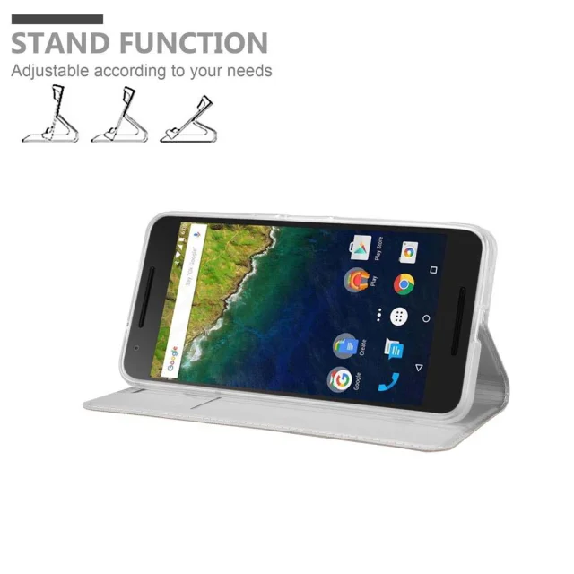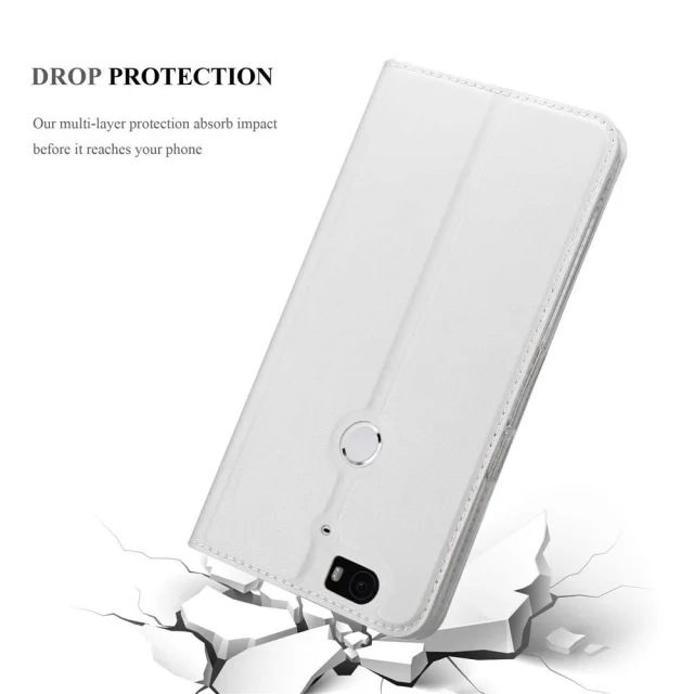Cadorabo Ohišje, združljivo z Huawei Google NEXUS 6P v klasično srebrno - Zaščitni ovitek z magnetnim zapiranjem, stoječo funkcijo in režo za kartice