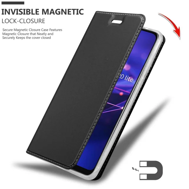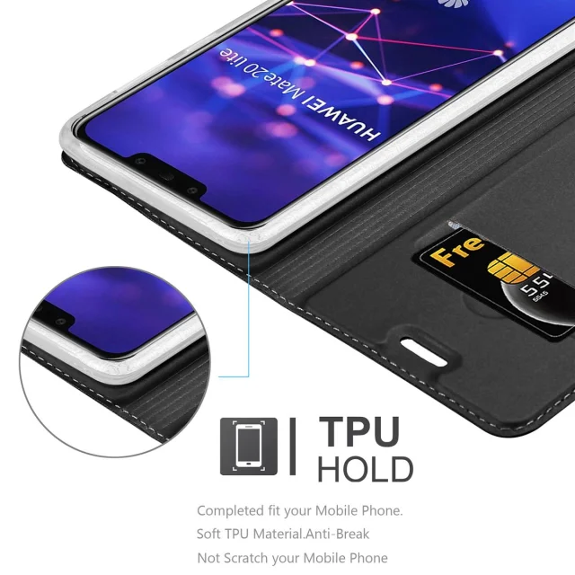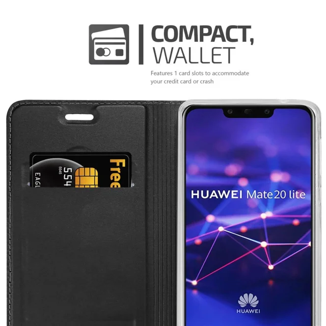 Cadorabo Ohišje, združljivo z Huawei MATE 20 LITE v klasična črna - Zaščitni ovitek z magnetnim zapiranjem, stoječo funkcijo in režo za kartice
