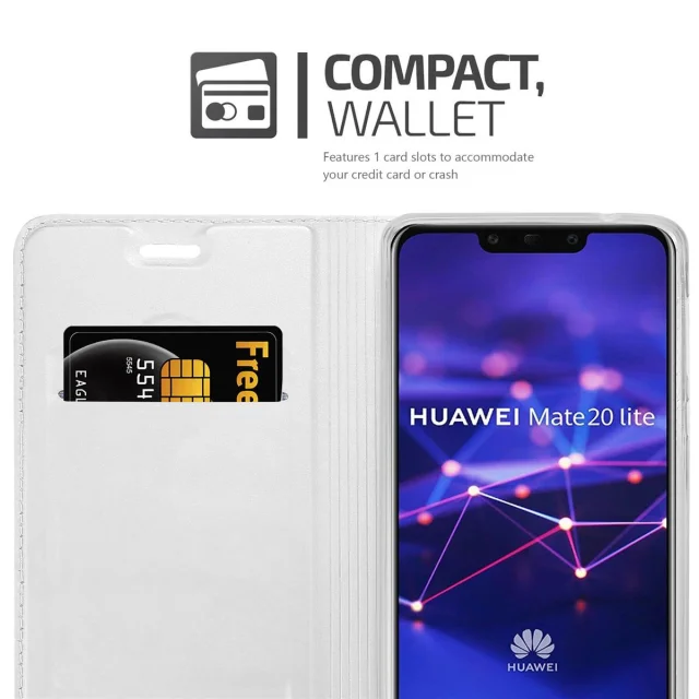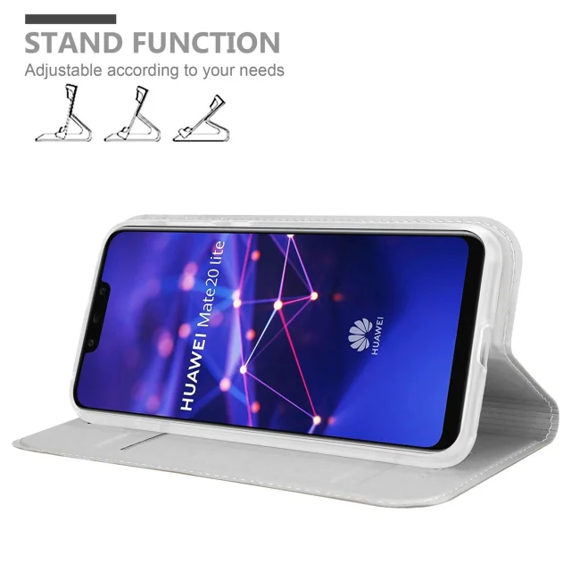 Cadorabo Ohišje, združljivo z Huawei MATE 20 LITE v klasično srebrno - Zaščitni ovitek z magnetnim zapiranjem, stoječo funkcijo in režo za kartice