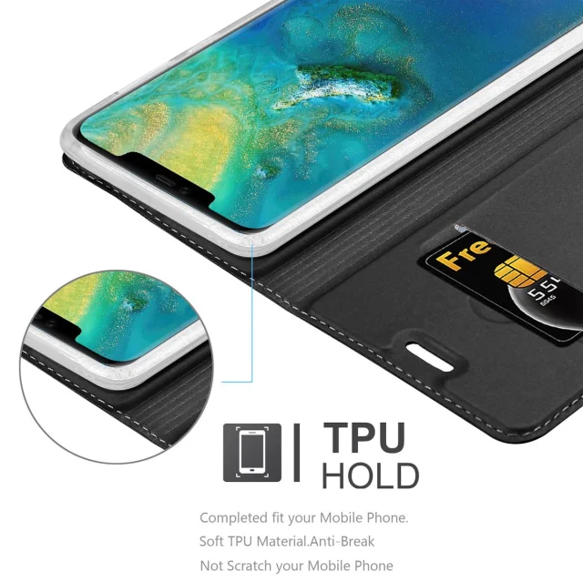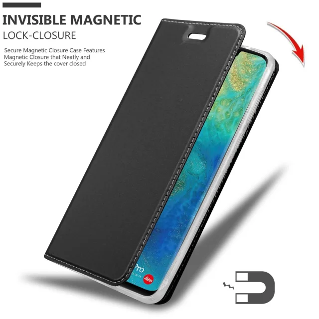 Cadorabo Ohišje, združljivo z Huawei MATE 20 PRO v klasična črna - Zaščitni ovitek z magnetnim zapiranjem, stoječo funkcijo in režo za kartice