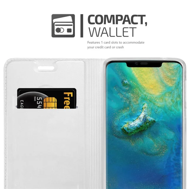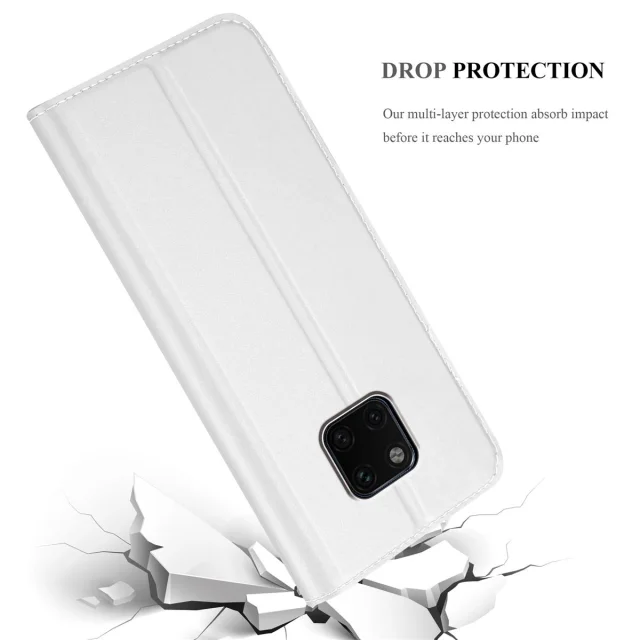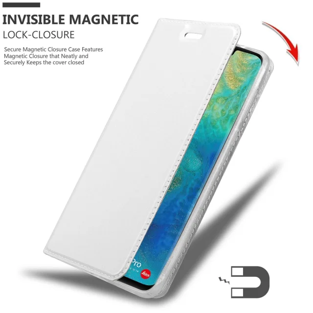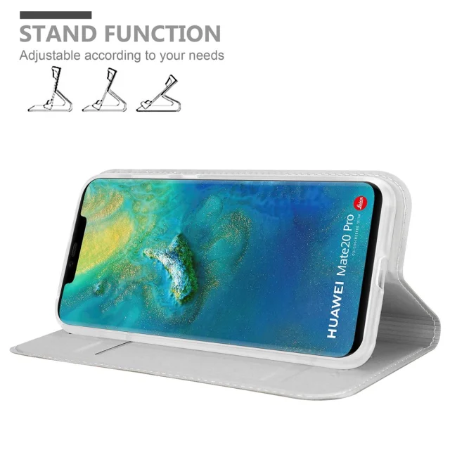 Cadorabo Ohišje, združljivo z Huawei MATE 20 PRO v klasično srebrno - Zaščitni ovitek z magnetnim zapiranjem, stoječo funkcijo in režo za kartice