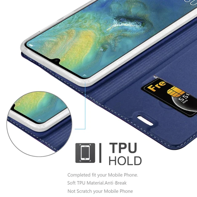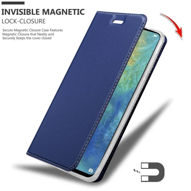 Cadorabo Ohišje, združljivo z Huawei MATE 20 v klasična temno modra - Zaščitni ovitek z magnetnim zapiranjem, stoječo funkcijo in režo za kartice
