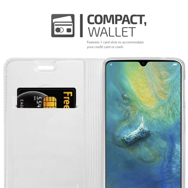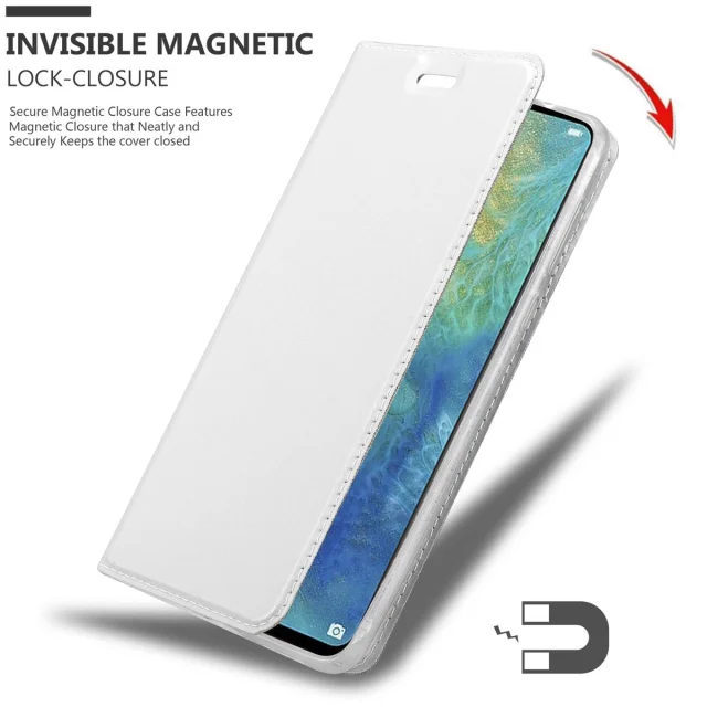 Cadorabo Ohišje, združljivo z Huawei MATE 20 v klasično srebrno - Zaščitni ovitek z magnetnim zapiranjem, stoječo funkcijo in režo za kartice