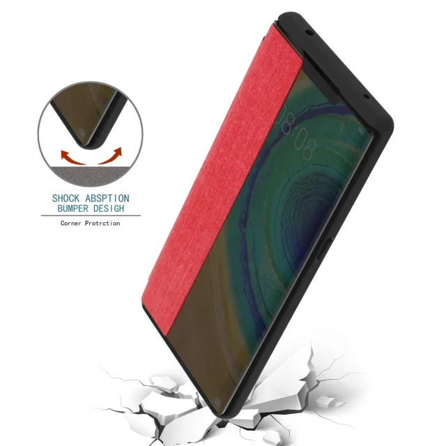 Cadorabo Ohišje, združljivo z Huawei MATE 30 PRO v rdeča - Pametni ovitek v videzu vlaken - Zaščitni ovitek s funkcijo stojala