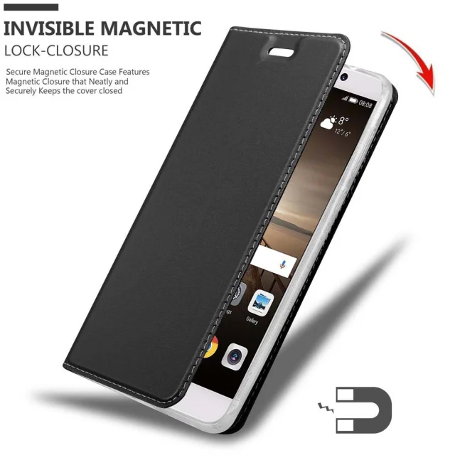 Cadorabo Ohišje, združljivo z Huawei MATE 9 v klasična črna - Zaščitni ovitek z magnetnim zapiranjem, stoječo funkcijo in režo za kartice