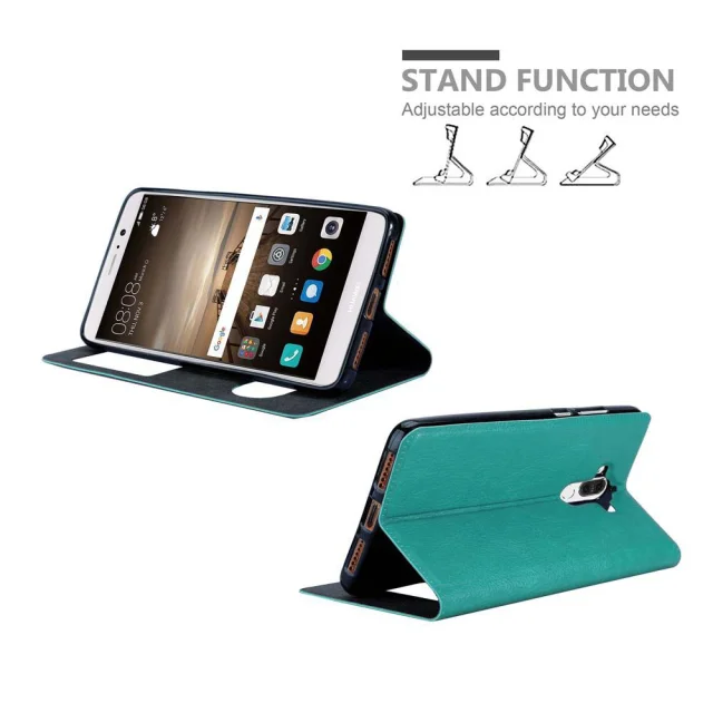 Cadorabo Ohišje, združljivo z Huawei MATE 9 v mint turquoise - Zaščitni ovitek z magnetnim zapiranjem, stoječo funkcijo in 2 okencema za gledanje