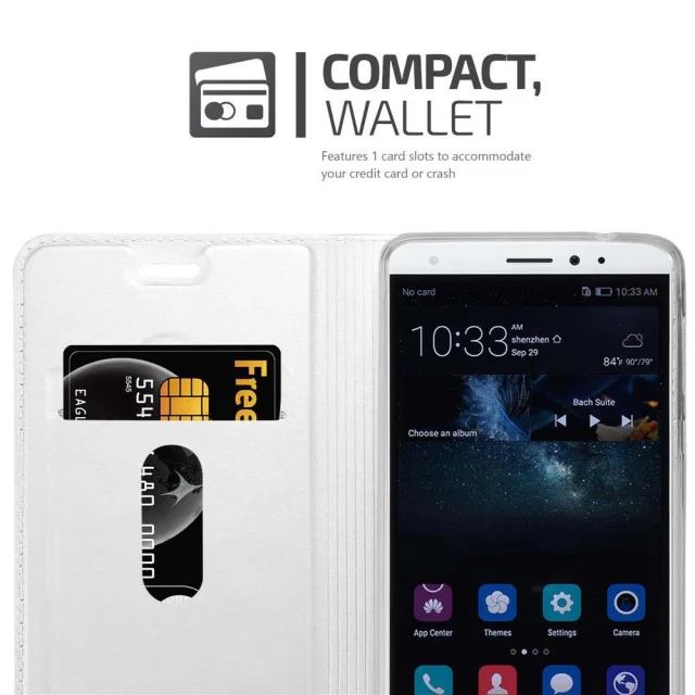Cadorabo Ohišje, združljivo z Huawei MATE S v klasično srebrno - Zaščitni ovitek z magnetnim zapiranjem, stoječo funkcijo in režo za kartice