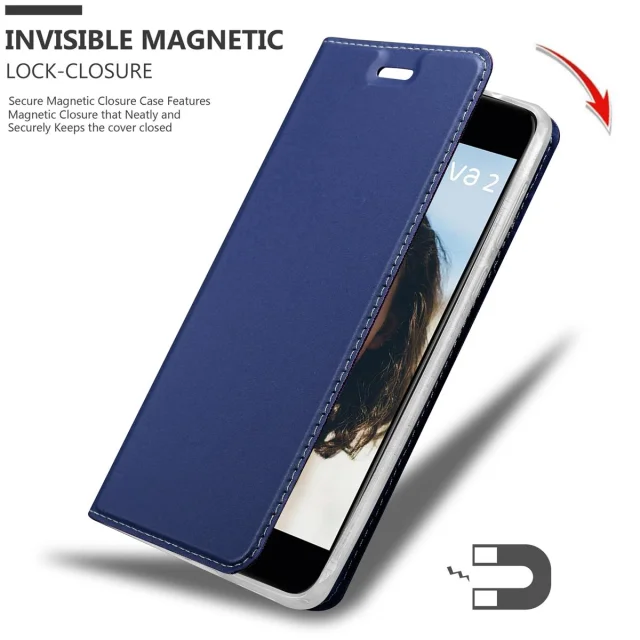 Cadorabo Ohišje, združljivo z Huawei NOVA 2 v klasična temno modra - Zaščitni ovitek z magnetnim zapiranjem, stoječo funkcijo in režo za kartice