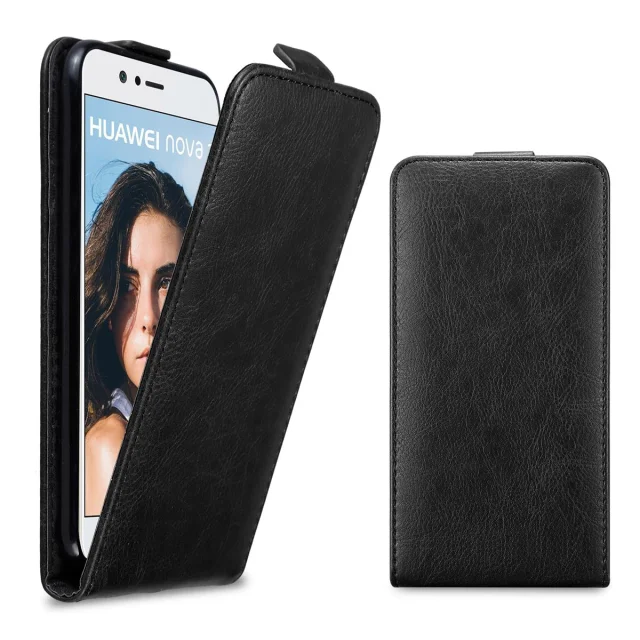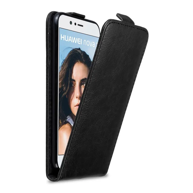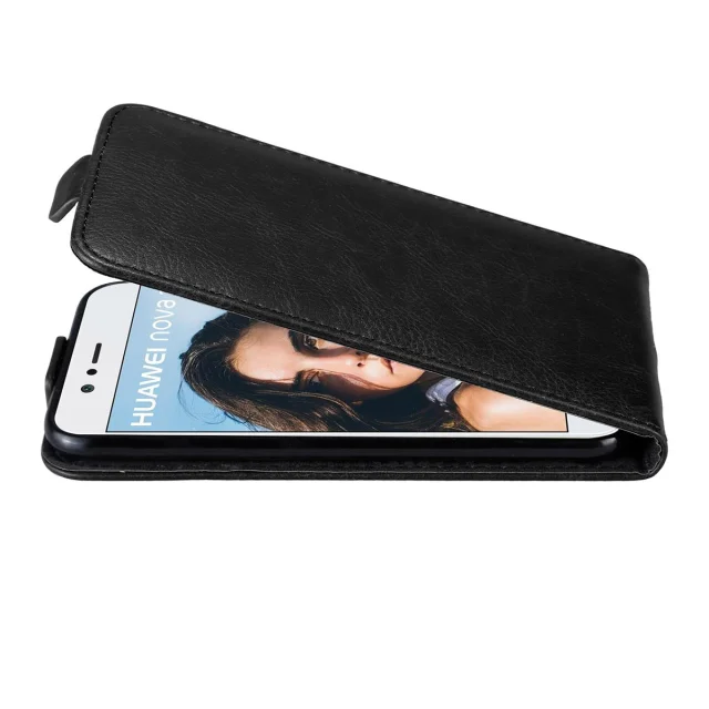Cadorabo Ohišje, združljivo z Huawei NOVA 2 v nočna črna - Zaščitni ovitek v obliki flipa z magnetnim zapiranjem