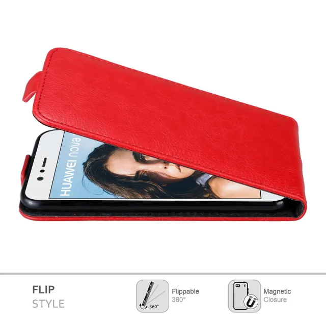 Cadorabo Ohišje, združljivo z Huawei NOVA 2 v rdeče jabolko - Zaščitni ovitek v obliki flipa z magnetnim zapiranjem