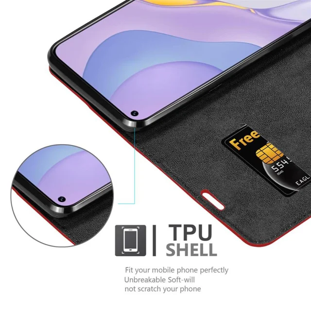 Cadorabo Ohišje, združljivo z Huawei NOVA 7 5G v rdeče jabolko - Zaščitni ovitek z magnetnim zapiranjem, stoječo funkcijo in režo za kartice