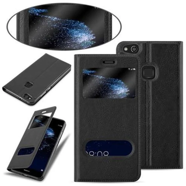 Cadorabo Ohišje, združljivo z Huawei P10 LITE v črni komet - Zaščitni ovitek z magnetnim zapiranjem, stoječo funkcijo in 2 okencema za gledanje
