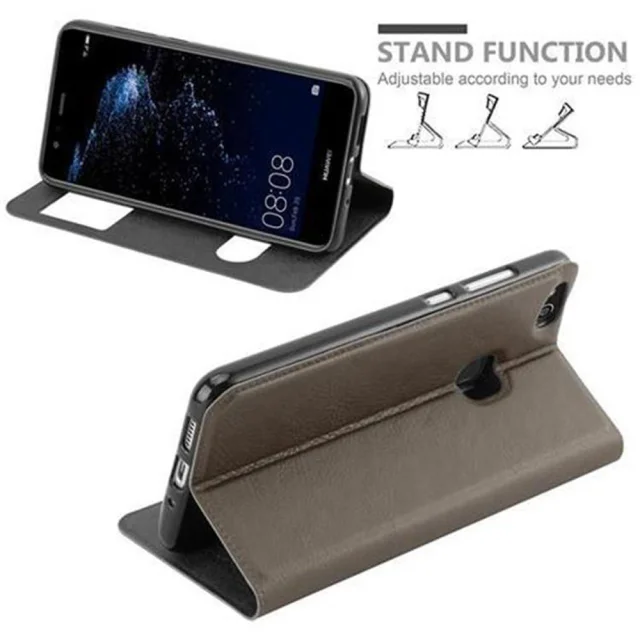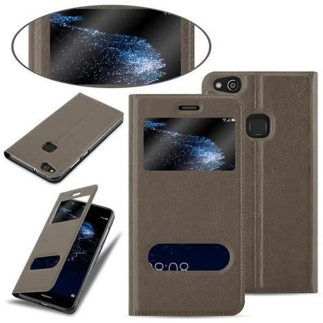 Cadorabo Ohišje, združljivo z Huawei P10 LITE v kamnito rjava - Zaščitni ovitek z magnetnim zapiranjem, stoječo funkcijo in 2 okencema za gledanje