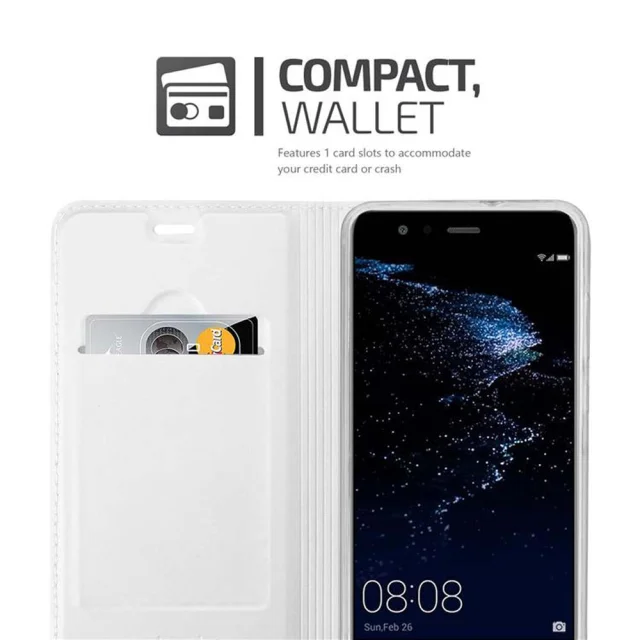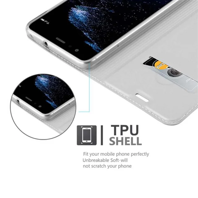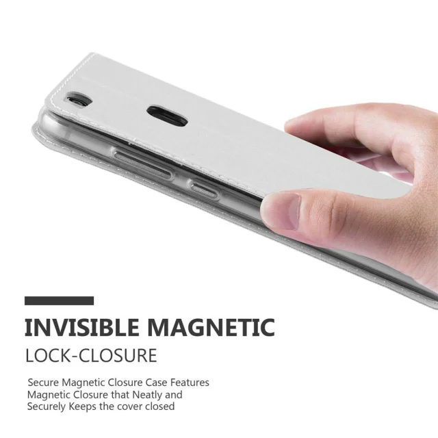 Cadorabo Ohišje, združljivo z Huawei P10 LITE v klasično srebrno - Zaščitni ovitek z magnetnim zapiranjem, stoječo funkcijo in režo za kartice