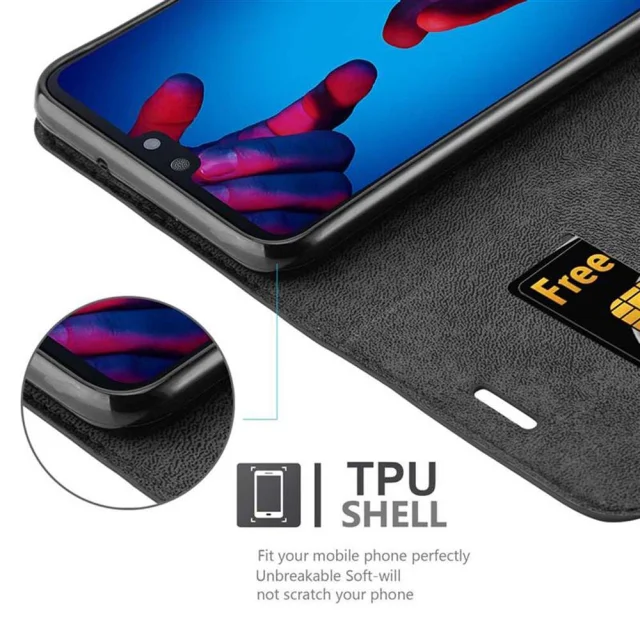 Cadorabo Ohišje, združljivo z Huawei P20 v nočna črna - Zaščitni ovitek z magnetnim zapiranjem, stoječo funkcijo in režo za kartice