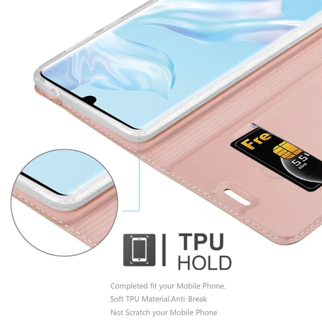 Cadorabo Ohišje, združljivo z Huawei P30 PRO v klasična rožnata zlata - Zaščitni ovitek z magnetnim zapiranjem, stoječo funkcijo in režo za kartice