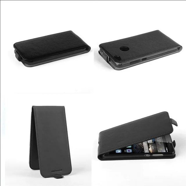 Cadorabo Ohišje, združljivo z Huawei P8 LITE 2017 / P9 LITE 2017 v oksidna črna - Zaščitni ovitek v obliki flipa iz teksturiranega umetnega usnja