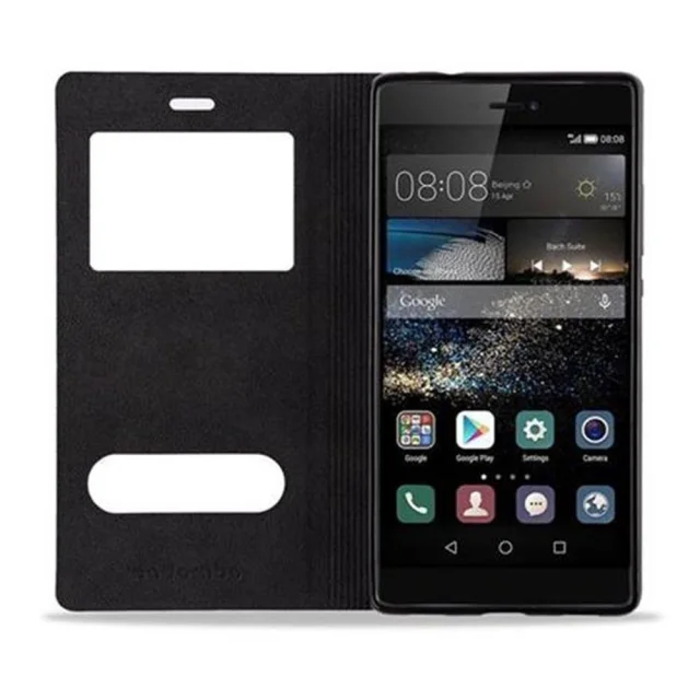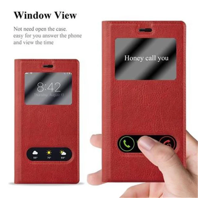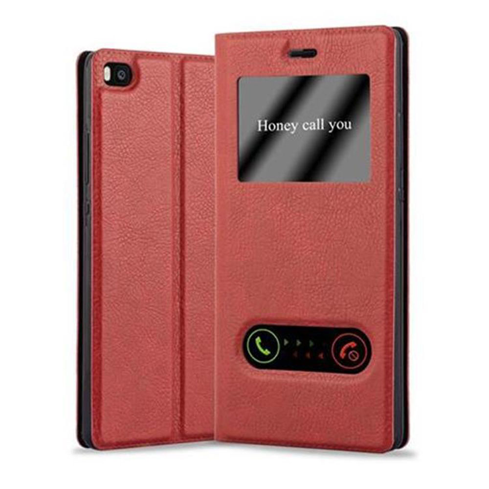 Cadorabo Ohišje, združljivo z Huawei P8 v žafranovo rdeča - Zaščitni ovitek z magnetnim zapiranjem, stoječo funkcijo in 2 okencema za gledanje