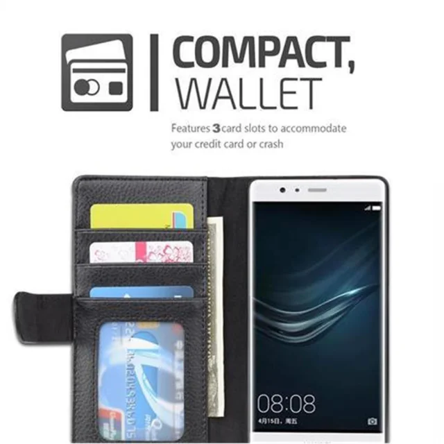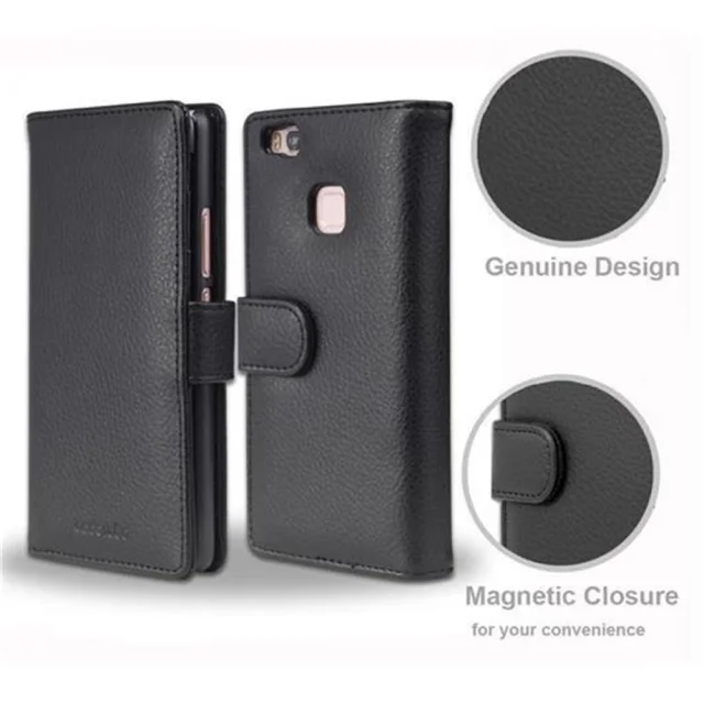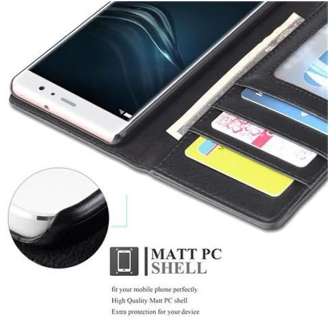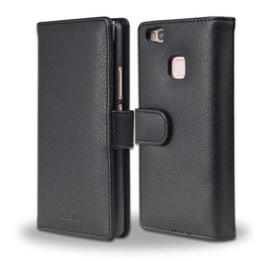 Cadorabo Ohišje, združljivo z Huawei P9 LITE 2016 / G9 LITE v črna polnočrna - Zaščitni ovitek z magnetnim zapiranjem in 3 režami za kartice