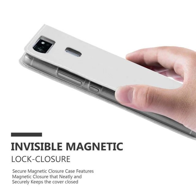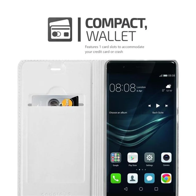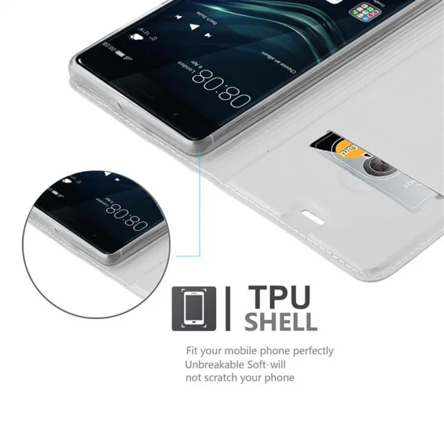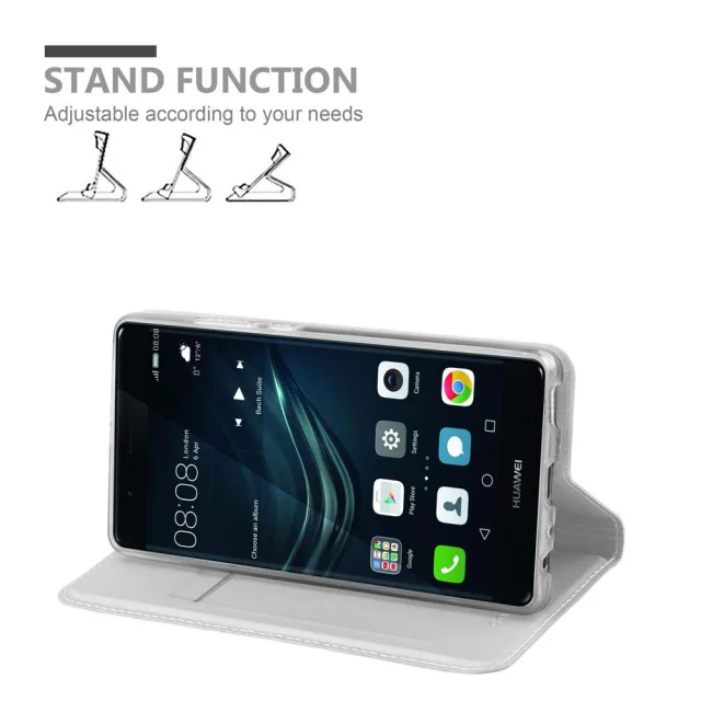 Cadorabo Ohišje, združljivo z Huawei P9 v klasično srebrno - Zaščitni ovitek z magnetnim zapiranjem, stoječo funkcijo in režo za kartice