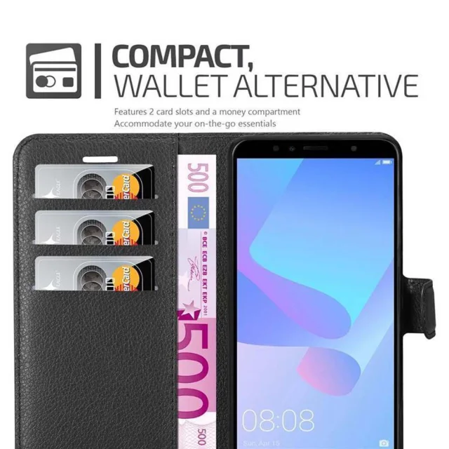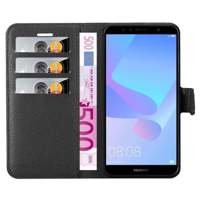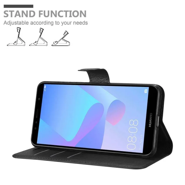 Cadorabo Ohišje, združljivo z Huawei Y6 PRIME v oksidna črna - Zaščitni ovitek z magnetnim zapiranjem, stoječo funkcijo in režo za kartice