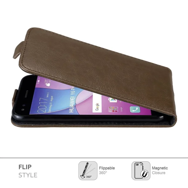 Cadorabo Ohišje, združljivo z Huawei Y6 PRO 2017 v kava rjava - Zaščitni ovitek v obliki flipa z magnetnim zapiranjem