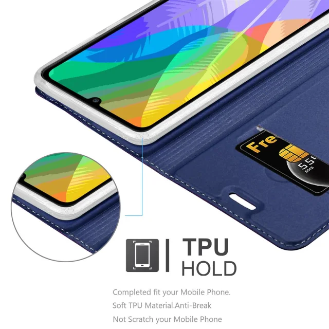 Cadorabo Ohišje, združljivo z Huawei Y6P v klasična temno modra - Zaščitni ovitek z magnetnim zapiranjem, stoječo funkcijo in režo za kartice
