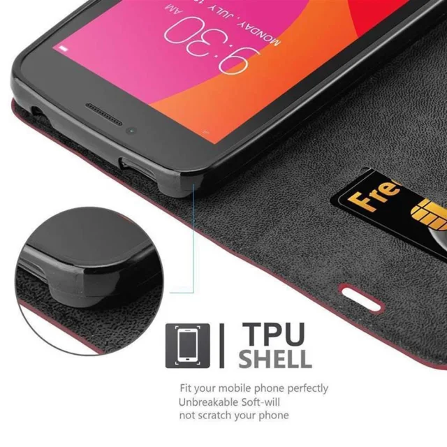 Cadorabo Ohišje, združljivo z Lenovo A PLUS v rdeče jabolko - Zaščitni ovitek z magnetnim zapiranjem, stoječo funkcijo in režo za kartice