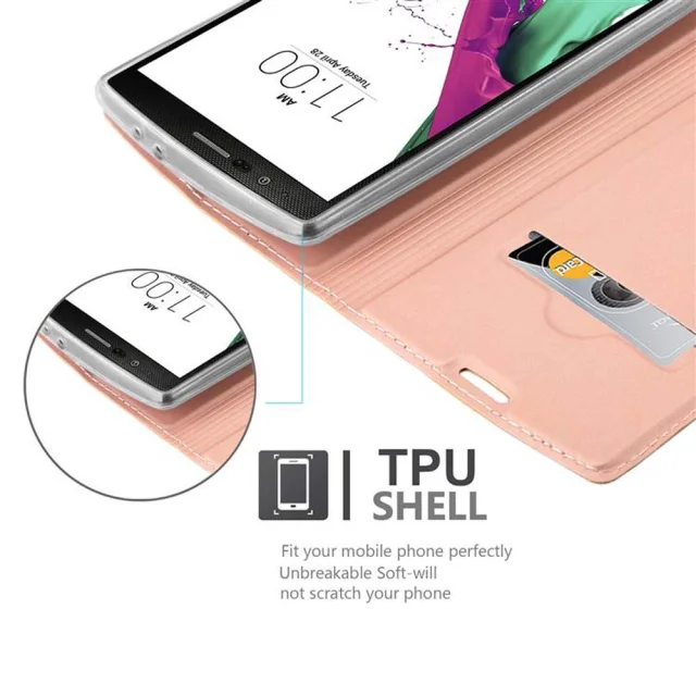Cadorabo Ohišje, združljivo z LG G4 / G4 PLUS v klasična rožnata zlata - Zaščitni ovitek z magnetnim zapiranjem, stoječo funkcijo in režo za kartice