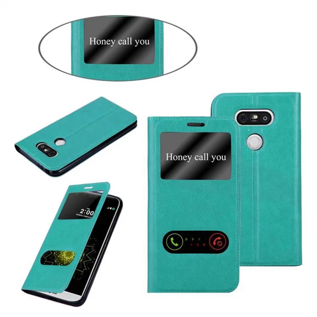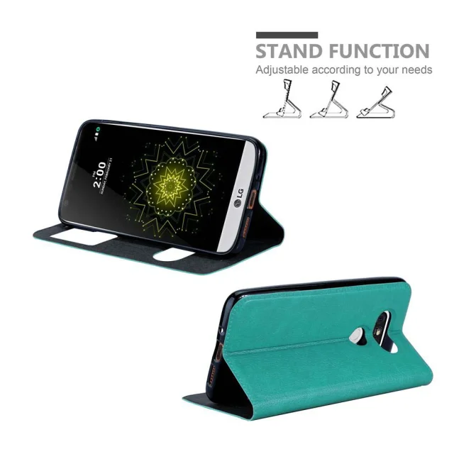 Cadorabo Ohišje, združljivo z LG G5 v mint turquoise - Zaščitni ovitek z magnetnim zapiranjem, stoječo funkcijo in 2 okencema za gledanje