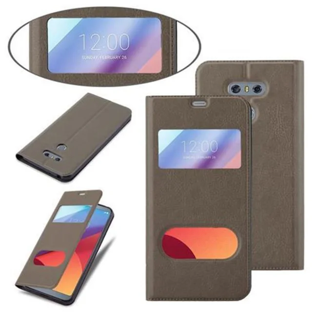 Cadorabo Ohišje, združljivo z LG G6 v kamnito rjava - Zaščitni ovitek z magnetnim zapiranjem, stoječo funkcijo in 2 okencema za gledanje