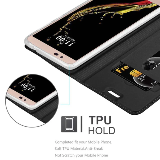 Cadorabo Ohišje, združljivo z LG K10 2016 v klasična črna - Zaščitni ovitek z magnetnim zapiranjem, stoječo funkcijo in režo za kartice