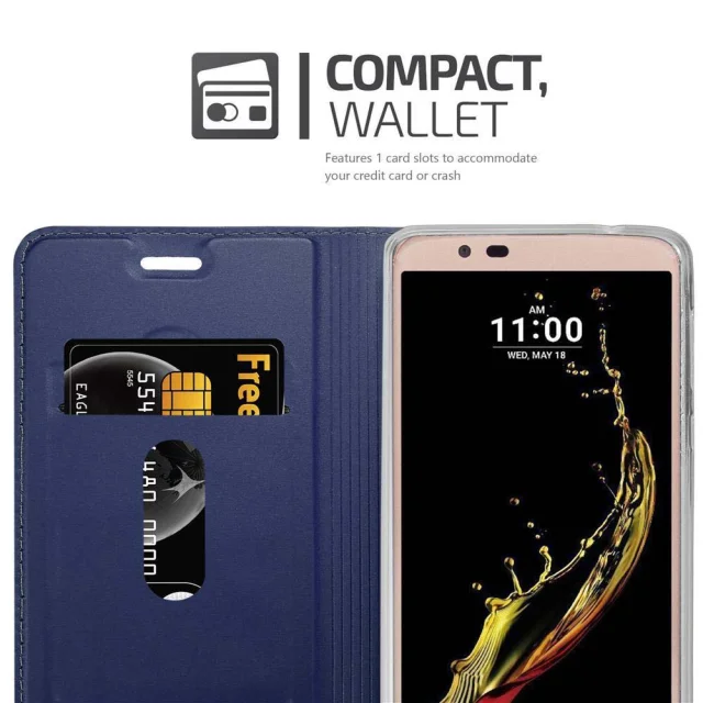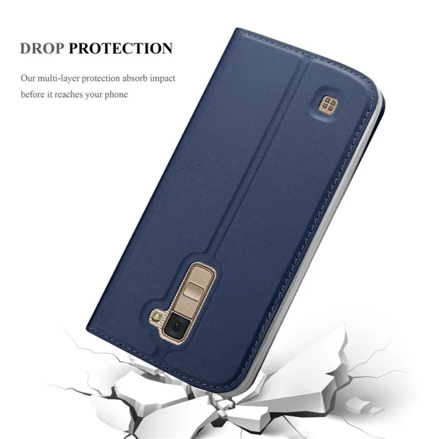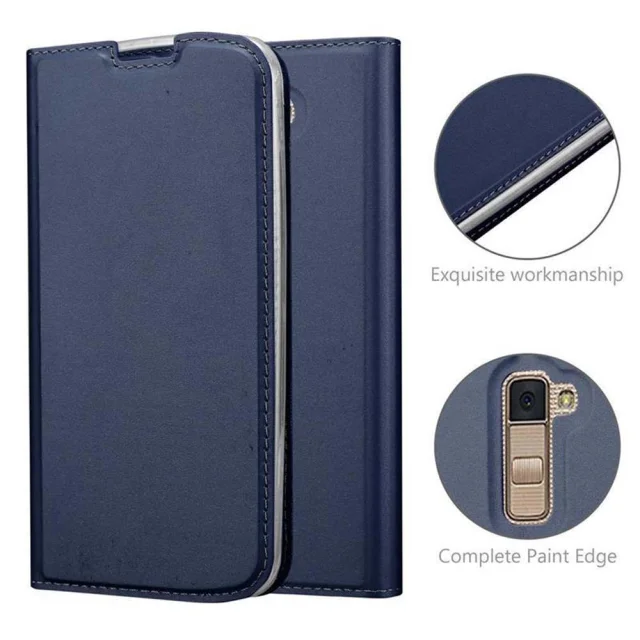 Cadorabo Ohišje, združljivo z LG K10 2016 v klasična temno modra - Zaščitni ovitek z magnetnim zapiranjem, stoječo funkcijo in režo za kartice